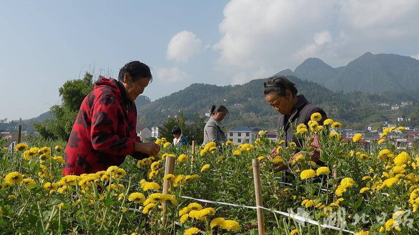 菊花在扮靓了乡村田野的同时,还绽放出“美丽经济”,带动当地群众实现“家门口”增收。“在这里采摘菊花,每天能收入100多块钱。”采摘工王大姐边说边熟练地采摘。