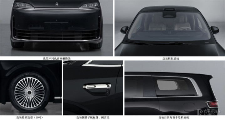 车身侧面非常修长,将会配备“大饼式”轮毂,车尾采用类似尊界的那种贯穿式灯带,晶钻点缀,智界的英文字母悬浮在其中,尊贵感非常明显。此外,新车还可以选装不同色前格栅饰条、镀银玻璃、轮辆造型、侧翼子板标牌、侧雷达、后四角窗非隐私玻璃等。